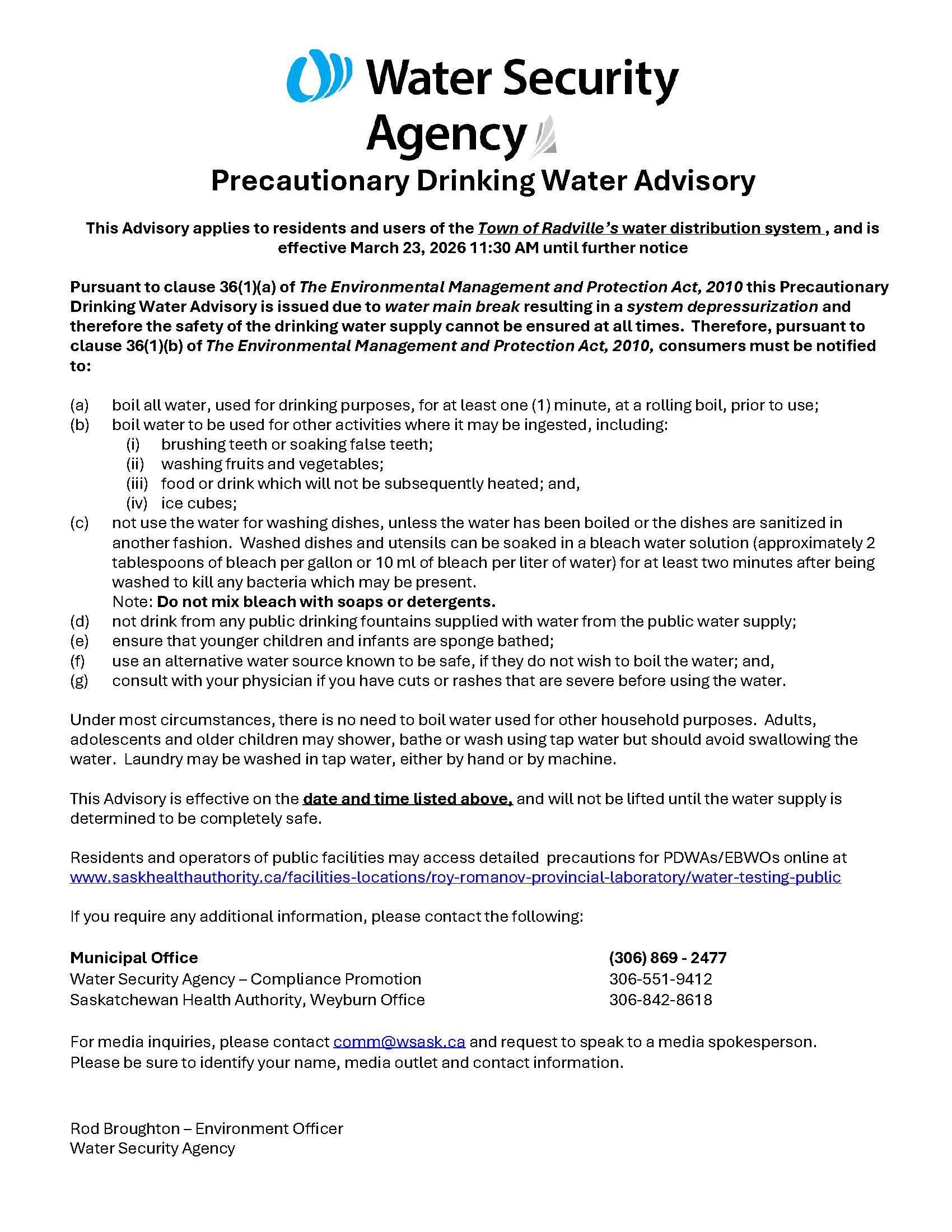 For questions or clarifications, please contact: Theresa Hicks, CAO – town.radville2@sasktel.net – (306)869-2477