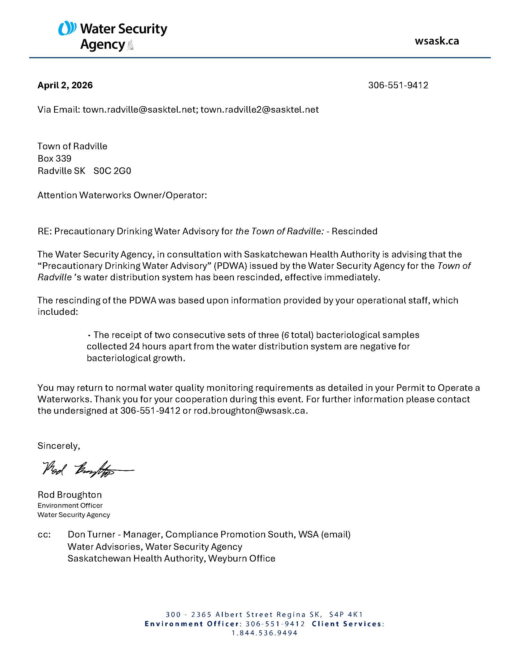 Precautionary Drinking Water Advisory has been rescinded, April 2, 2026.