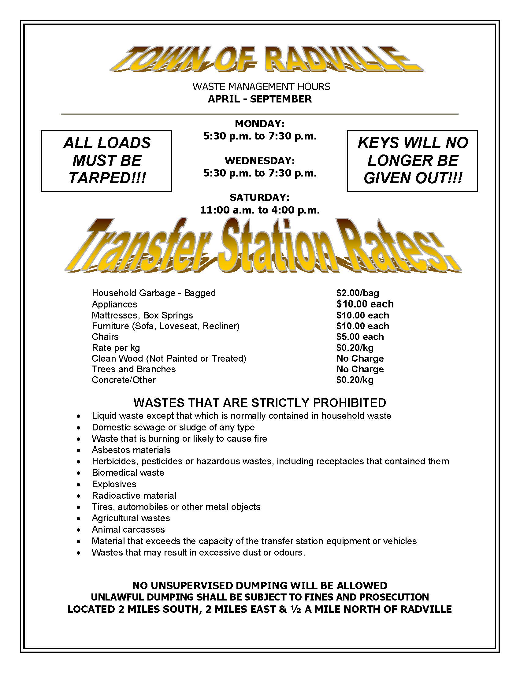 If you have any questions or need assistance please call the Radville Town Office.