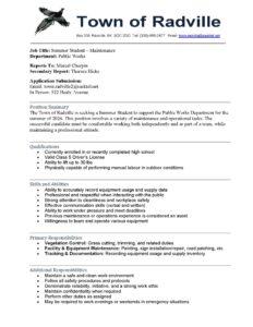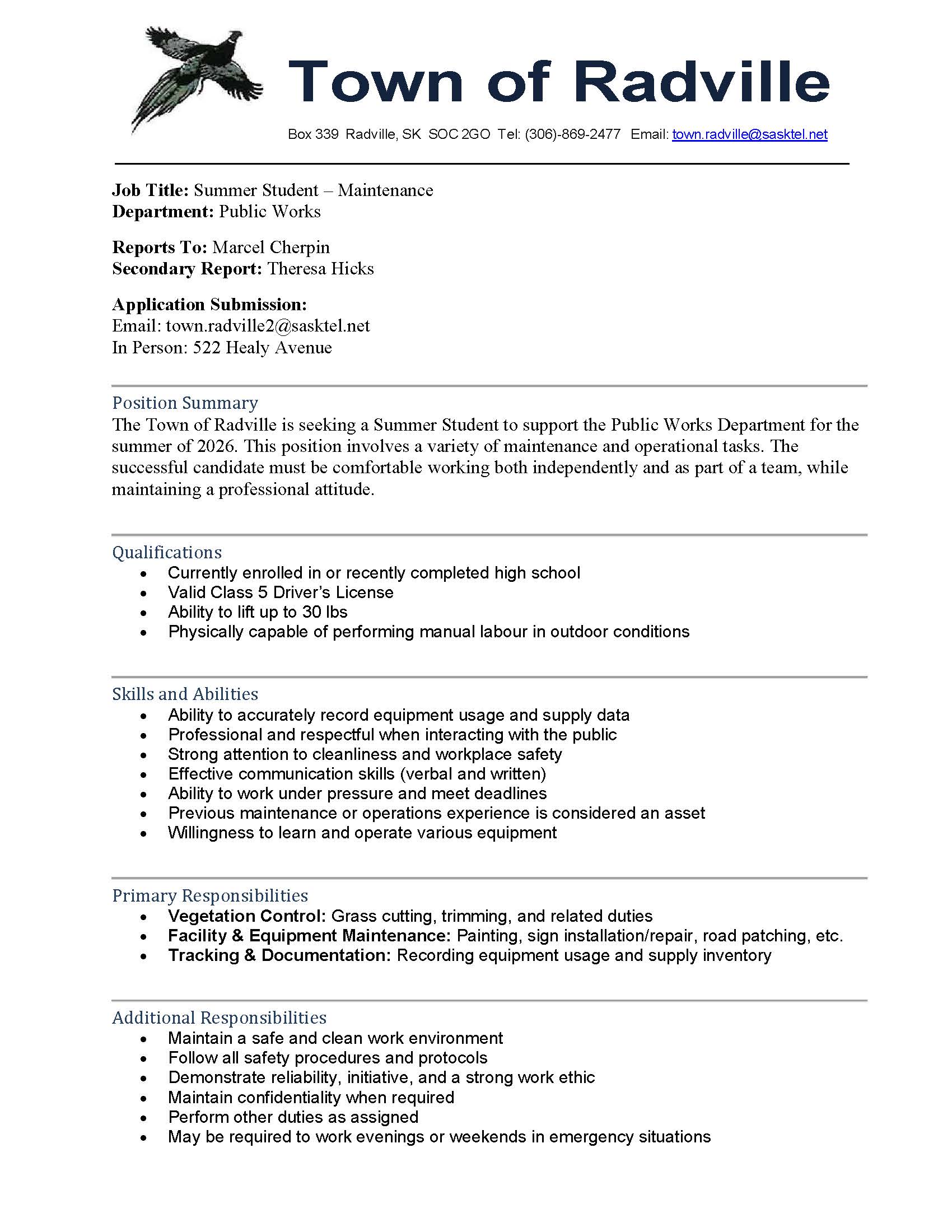 Town of Radville is looking for Summer Students for the Public Works Department: